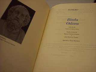Homero. Iliada. Odisea. Espasa-Calpe, Biblioteca de literatura universal. 1856pp. 19cm. Tela. Estuche. Edición de Carlos García Gual. Traducciones de Emilio Crespo Güemes y José Manuel Pabón. Apéndice de Óscar Martínez. Edición bilingüe. 50€.